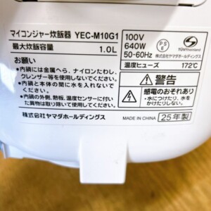 福岡県小郡市にてヤマダ電機 YEC-M10G1 を出張買取 2025年製・全体的にきれいな状態で高く評価しました