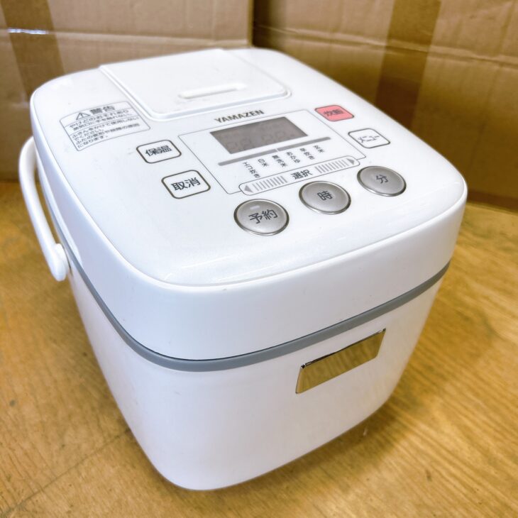 外観および内釜に使用感が見られたものの、2020年製と比較的新しく動作も良好である点を評価し、今回は500円での買取となりました。山善の炊飯ジャーは一定の需要があり、再整備後の販売も見込めるためこの価格でのご提示となりました。
