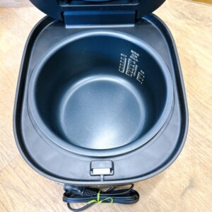 お預かりした BKS-55 は、外側に軽い汚れがいくつか見られる使用感のある状態でした。一方で、うち窯は非常に綺麗でコーティング剥がれもなく、炊飯機能も問題なく動作していました。年式が2023年と比較的新しい点も評価できるポイントです。