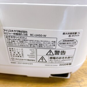 東京都町田市にてアイリスオーヤマ RC-IJH50-W を出張買取 内釜汚れと外装の使用感ありでも丁寧に査定しました