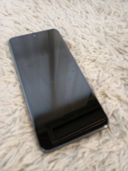 お預かりしたGalaxy A20は、動作に問題はないものの全体的に使用感が見られる状態でした。液晶面には細かなスレがあり、光にかざすと擦過痕が目立つ部分も確認されました。背面パネルは比較的きれいでしたが、下部にわずかな歪みと小キズが見られました。側面フレームにも角に軽微なチップがあるなど、通常使用に伴うダメージは一定レベルで見受けられました。