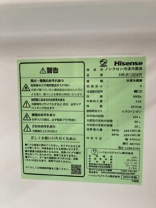 新潟県村上市でHisense HR-B12E4Wを出張買取 2024年製のきれいな冷蔵庫を適正価格で査定しました