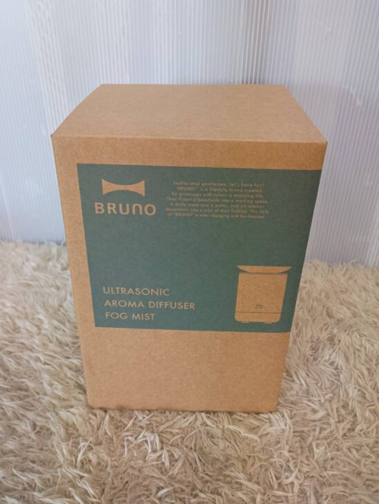 お送りいただいたBRUNOのアロマディフューザーは、外箱付きで全体的にきれいな状態でした。外箱には保管時のわずかな擦れがありましたが、本体は大きな傷や汚れは見受けられず、動作確認も問題なし。加湿・ミスト量ともに良好で、使用感の少ない状態でした。