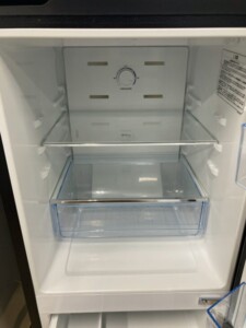 お預かりした冷蔵庫は、前面がガラスドア仕様のブラウンカラーで、外観には細かな擦れこそあるものの大きな傷はなく良好な状態でした。庫内は冷蔵室・冷凍室ともに非常に清潔で、棚板やクリアケースなどの付属パーツも欠けなく揃っていました。冷却ダイヤル周りや引き出し部分の動作も問題なく、全体を通して丁寧に使用されていた印象です。