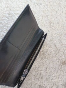 お送りいただいた長財布は、表面に擦れやツヤ落ちなどの使用感がみられ、角部分にも軽い摩耗が確認されました。内側は比較的きれいな状態で、カードスロット・札入れ部分は破れなどはなく、ファスナーもスムーズに開閉できました。ただし全体的に「中古使用品」としての質感が残っているため、その点を評価に反映させていただきました。