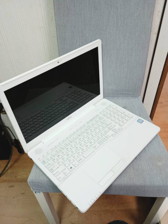 お預かりしたLIFEBOOK AH50/Xは、天板・キーボード・液晶ともに大きく目立つ傷のない比較的きれいな状態でした。外観は白色の筐体が清潔に保たれており、目立つ汚れもありません。通電・基本動作も問題なく、Webカメラ・タッチパッド・キー入力なども正常に確認できました。
