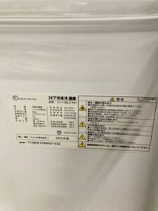 今回は印西市内にお住まいの40代男性より、TOHOTAIYO 2ドア冷凍冷蔵庫 TH-138L2-WH(2023年製)を出張買取にてご依頼いただきました。お住まいは賃貸アパートの単身世帯で、買い替えに伴う不要品整理としてお問い合わせいただきました。