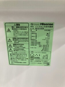 岡山県新見市で冷蔵庫買取 Hisense HR-D15CB 2020年製やや使用感ありのため適正価格で査定しました