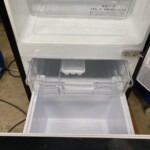 HR-D15CBは150Lクラスのコンパクト冷蔵庫で、冷蔵室のガラス棚・低温ケース・冷凍室のトレイなど、内部は比較的良好な状態を保っていました。外観については前面に小さなスレや使用に伴う細かな傷が見られたものの、大きなへこみや割れなどは確認されず、動作にも問題はありませんでした。