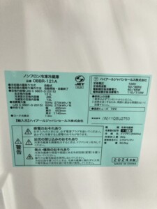 三重県名張市で冷蔵庫買取 Haier OBBR-121A 2024年製 美品を適正価格で査定しました