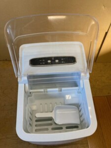 お預かりした高速製氷機 VS-ICE010は、本体外装に軽度の使用に伴う擦れや汚れが見受けられましたが、破損や大きな割れは確認されませんでした。製氷タンク内部やスコップも付属しており、通電・製氷動作ともに問題なく確認できています。透明カバー部分も割れはなく、実用面では十分使用可能な状態と判断しました。