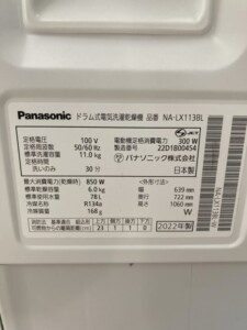 東京都墨田区にてPanasonic ドラム式洗濯乾燥機 NA-LX113BL 2022年製を出張買取|使用感はあるが動作良好のため適正価格で査定