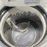 お引き取りした洗濯乾燥機は、外観に日常使用に伴う細かな擦れやわずかな汚れが見受けられましたが、大きなへこみや割れはありませんでした。洗濯槽内部は比較的きれいな状態で、動作確認においても洗い・脱水・乾燥の各工程が正常に動作することを確認しています。給水ホースなどの基本付属品も揃っていました。