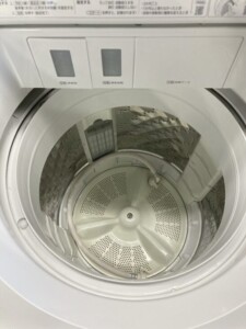 お引き取りした洗濯機は、外装に目立つ傷やへこみは見られず、全体的にきれいな状態でした。フタ部分や操作パネルにも使用による強い劣化はなく、表示の薄れやボタン不良もありません。洗濯槽内部についてもカビ汚れや強い臭いは確認されず、給水・洗い・脱水まで一連の動作確認を行った結果、問題なく稼働しました。日常使用による軽微な使用感はあるものの、再販に十分適した状態です。