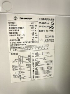 岡山県玉野市へ出張買取 シャープ ES-GV8J-N 全自動洗濯機 2024年製 使用感少なく状態良好のため査定しました