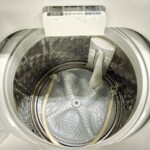 外観は全体的に目立つへこみや大きな傷は見受けられず、天面・操作パネル周辺ともに良好なコンディションでした。細かく確認すると、設置や使用に伴うごく軽微な擦れはあるものの、外観評価に大きく影響するレベルではありません。洗濯槽内はステンレス槽に強い水垢や汚れは見られず、給水ホース・排水ホースも付属していました。動作確認では洗い・すすぎ・脱水まで問題なく稼働しています。