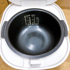 今回お預かりした炊飯器は、外観に細かな擦り傷や使用感が見られたものの、内釜のコーティング剥がれは軽度で、炊飯機能も問題なく動作確認ができました。容量0.54Lと単身向けモデルで、コンパクトなサイズ感が中古市場でも安定した需要のある点が特徴です。