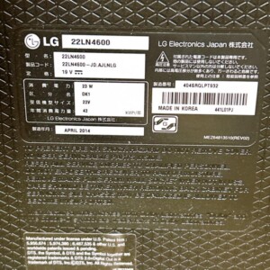 お預かりしたLG 22LN4600は、動作自体は問題なく映像の表示も正常でしたが、外観には擦れや細かな傷が見受けられる使用感のある状態でした。リモコン・電源コードは揃っており、背面端子の破損や歪みもなく実使用には問題のないコンディションです。