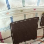 お送りいただいたショルダーバッグは、全体として通常使用に伴う使用感が見られる状態でした。キャンバス地のシグネチャー柄部分には大きな汚れや破れはなく、角スレも軽度にとどまっています。一方で、ストラップのレザー部分には経年による擦れやシワが確認できました。ファスナー開閉は問題なく、内側のライニングにも目立つ破損はありませんでした。
