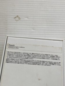 お買取したiPhone13は開封済の本体は未使用品だった事で通話・通信・カメラ・各種ボタン操作に問題はありませんでした。本体自体にも大きな破損や傷は無く画面割れも見られませんでしたが、外箱には保管時についた汚れや擦れが確認できました。