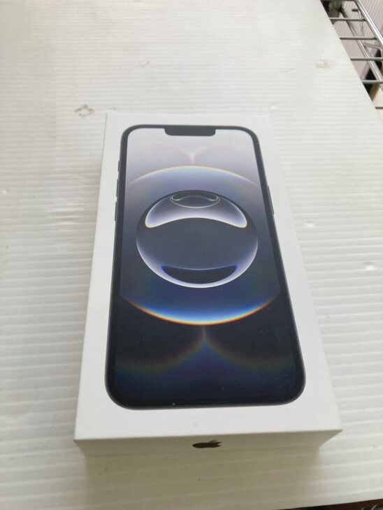 お預かりしたiPhone16eは、未使用・箱付きの状態でした。外箱に大きな潰れや破れはなく、保管に伴うわずかな擦れが見られる程度です。内容物は本体とUSB-C充電ケーブルが揃っており、IMEI・シリアル表記も確認できました。初期状態が維持されており、通電や動作面の問題は一切ありません。