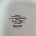 お買取したプレートの裏面バックスタンプよりilleroy & Boch「Design Naif」シリーズであることを確認しました。表面の絵柄は発色も良く、ヒビや欠けは見られません。裏面に使用に伴う細かなスレや小さな汚れ・汚れは若干ありましたが、比較的綺麗な状態を保っており再販売出来るコンディションでした。また、電子レンジ・食洗機対応のVITRO-Porcelaine仕様で、実用性とデザイン性を兼ね備えたシリーズとして評価できる点も査定時の判断材料となりました。