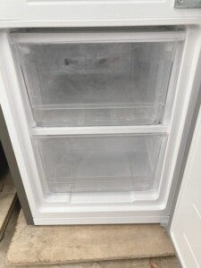お預かりしたSAMKYO製冷蔵庫は、外観に大きなへこみや目立つ傷は見られず、庫内も清潔感のある状態でした。冷蔵室・冷凍室ともに棚や引き出しの欠品はなく、ドアポケットも破損は確認されていません。動作確認では冷却性能に問題はなく、冷蔵・冷凍ともに安定した稼働を確認しています。中古品としては全体的に扱いやすいコンディションでした。