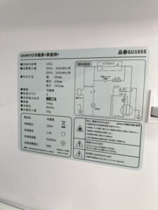 北海道恵庭市にてSAMKYO 冷蔵庫 GU165S 165L 目立つ傷の少ない状態を出張買取しました
