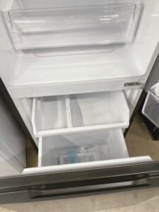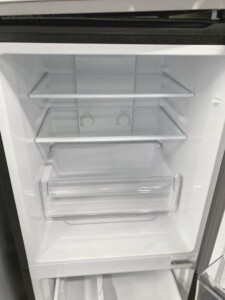 お預かりした冷蔵庫は、外観に目立つへこみや大きな傷は見られず、庫内も清潔感のある状態でした。棚板・クリアケース・ドアポケットなどの付属パーツも揃っており、冷蔵・冷凍ともに動作確認は問題なし。使用感はあるものの、全体的に丁寧に使われていた印象です。