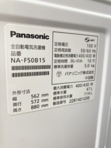 宮城県仙台市にてPanasonic 全自動洗濯機 NA-F50B15(5.0kg)を出張買取|比較的きれいな状態を考慮し適正価格で査定しました
