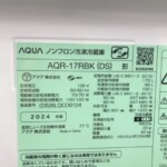 山梨県笛吹市でAQUA ノンフロン冷凍冷蔵庫 AQR-17RBK(DS)を出張買取|2024年製・使用感少なめのため適正価格で査定しました