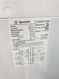 茨城県八千代町でSHARP 全自動洗濯機 ES-GV8J-N 2024年製を出張買取 使用感が少なく状態良好のため高価査定にて買取査定をしました