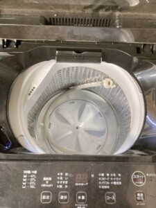 一方で、槽内は写真から大きなカビ汚れや強い臭いの付着が目立ちにくい状態で、糸くずフィルターなど基本パーツも揃っていました。洗濯容量5.5kgのコンパクト機は一人暮らし需要が根強く、外装の使用感を差し引いても再販が見込める点を評価しました。
