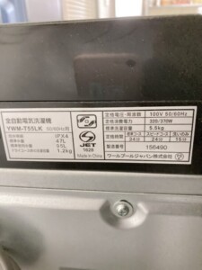 愛知県津島市でRORO(ワールプールジャパン)全自動洗濯機 YWM-T55LKを出張買取 ほこり・小傷ありでも需要を踏まえて査定しました