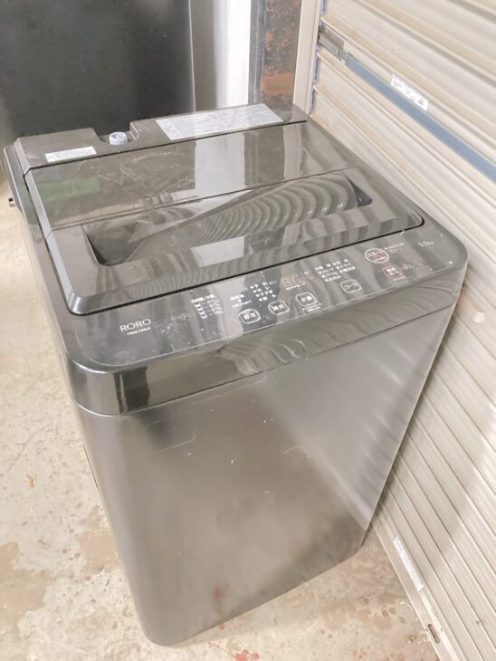 岡山県総社市でRORO(ワールプールジャパン)全自動洗濯機 YWM-T55LKを出張対応 ほこり・小傷あり、年式不明のため0円引き取りとなりました