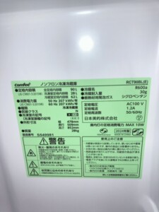 大阪府八尾市にてComfee ノンフロン冷凍冷蔵庫 RCT90BL(E) きれいな状態のため適正価格で買取しました