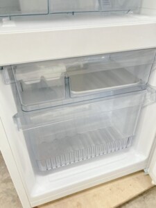 お預かりした冷凍冷蔵庫は、外観に目立つ傷やへこみは見られず、庫内も清潔感があり全体的にきれいな状態でした。ガラス棚や野菜ケース、冷凍室の引き出しも揃っており、欠品は確認されていません。動作確認においても冷蔵・冷凍ともに問題なく、使用感の少ない良好なコンディションでした。