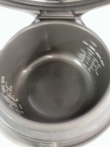 内釜は写真で確認できる範囲で、メモリ表示が残っており、コーティングの著しい剥がれは見受けられませんでした。炊飯器は内釜の状態が再販時の評価に直結しやすいため、使用感の程度を重点的に確認して査定しています。