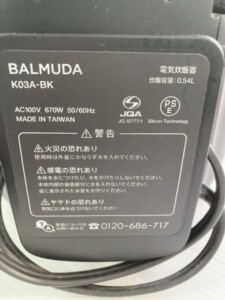 千葉県浦安市にてBALMUDA The Gohan(K03A-BK)を出張買取 使用に伴う小傷ありのため状態を踏まえて査定しました