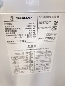 山梨県南アルプス市にてSHARP 全自動電気洗濯機 ES-T712-T 出張買取|使用感はあるものの動作良好のため適正価格で査定しました
