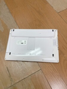 お預かりしたLIFEBOOK SH90/B1は、天板や底面に細かなスレや使用感が見られる状態でした。外装に割れや大きな破損はなく、ヒンジ部分も安定しています。液晶表示は問題なく、キーボード入力・タッチパッド操作ともに正常に動作を確認しました。通電および起動も問題なく、日常使用に支障のない状態でした。
