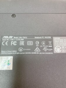 東京都渋谷区でASUSノートパソコン F541Uを出張買取 使用感ありでも丁寧に査定しました