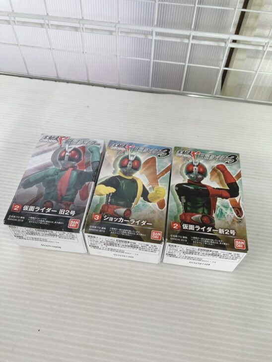 旧2号・ショッカーライダー・新2号はいずれも、初期仮面ライダーシリーズの中でも根強い人気を持つキャラクターです。複数体セットである点と未開封状態を高く評価しました。