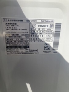 (2022年4月下旬買取)HITACHI(日立) 7.0kg 全自動洗濯機 NW-70E 2020年製