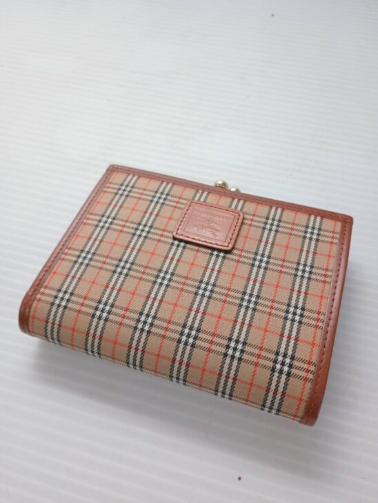 埼玉県戸田市でバーバリー ノバチェック柄 がま口二つ折り財布を出張買取 使用感を考慮して査定しました