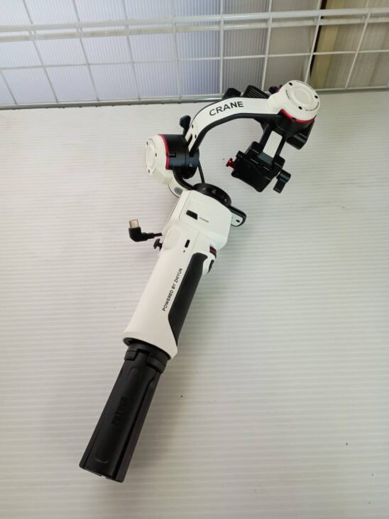 ご依頼いただいたCRANE M3は、目立った傷や汚れも少なく、全体的にきれいな状態でした。動作確認でも問題なく、各モーター軸やボタンも正常に反応。専用の充電ケーブルとハンドル付きで、可動部分にガタつきはありませんでした。スタビライザーとしての精度も高く、丁寧に使用されていたことがうかがえる良品です。