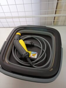 お預かりしたケルヒャー OC3 Foldableは、外装に軽度の擦れや使用に伴う小キズが見受けられましたが、大きな割れや破損はありませんでした。ホース・ガン・本体収納ケースは揃っており、折りたたみ機構も問題なく動作しています。通電および噴射動作も確認でき、実用面では支障のない状態でした。