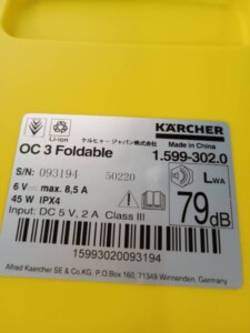 埼玉県飯能市 ケルヒャー OC3 Foldable 高圧洗浄機 使用感ありのため状態を踏まえて査定しました