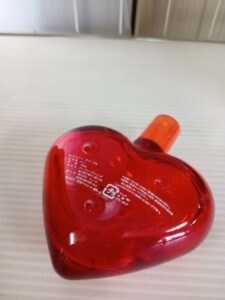 お預かりしたエンジェルハート オードトワレは、ハート型のボトルに大きな割れや欠けはなく、スプレー噴射も正常に確認できました。使用されていた形跡はあり、ボトル表面には保管時に付いた細かな擦れや小傷が見受けられますが、香水の残量はまだ十分に残っている状態です。外箱は付属していないため、その点を考慮した査定となりました。