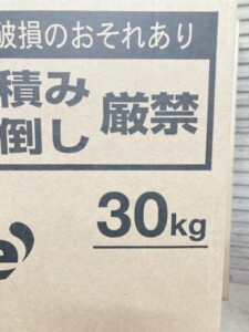 お品物はメーカー外箱に入ったままの未開封状態で、箱の破れや大きな潰れも見られず、保管状態も良好でした。外箱表示では容量90L・日本国内専用モデルであることが確認でき、輸送用の注意表示や重量表記もはっきり残っていました。未開封であるため本体への傷や使用痕は一切なく、再販売時にも評価しやすい非常に良いコンディションと判断できる状態です。